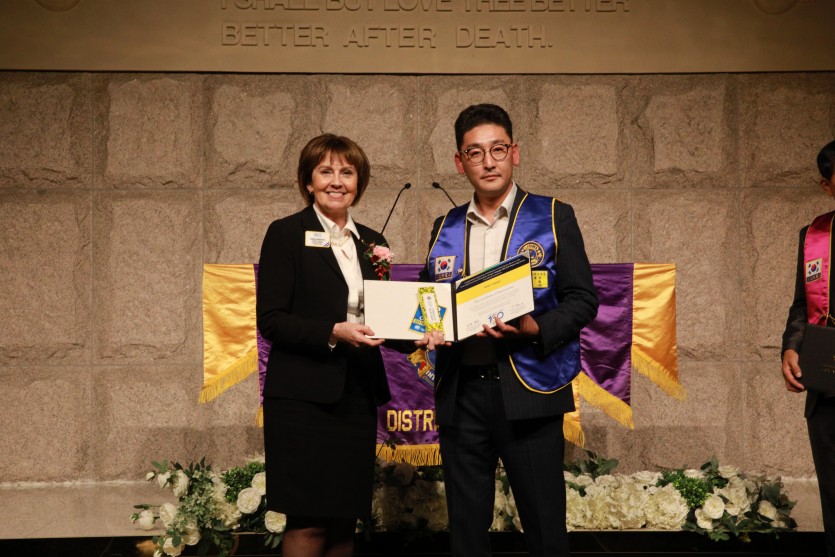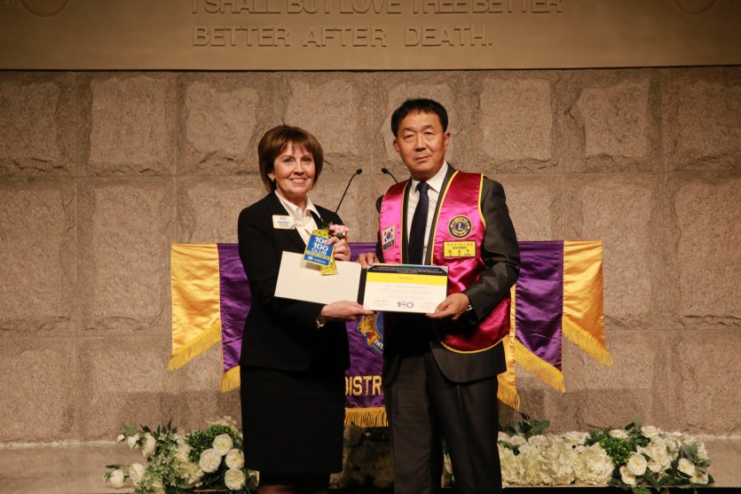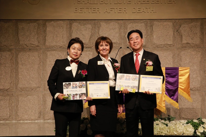 국제재단 감사장: 총재 주선희L, 전 총재 최재홍L.