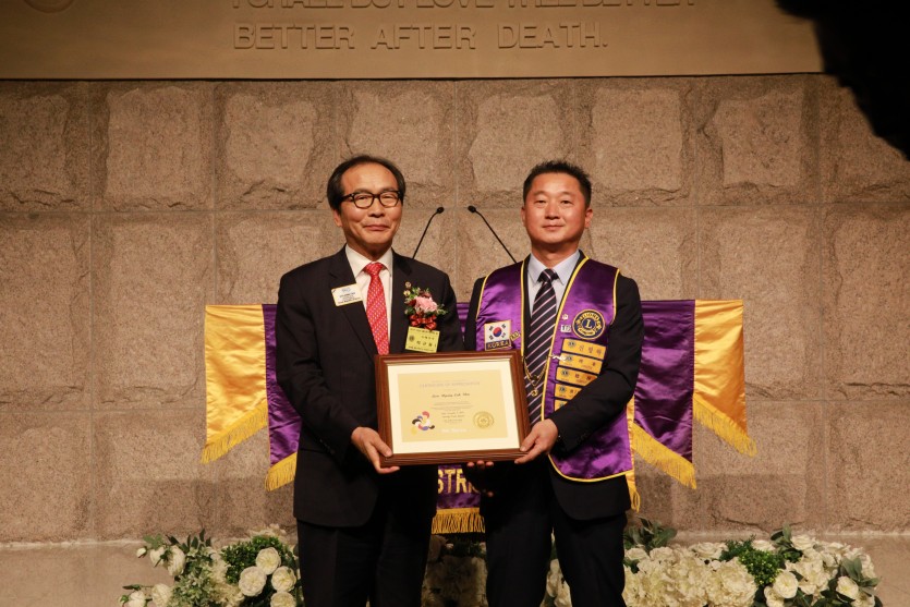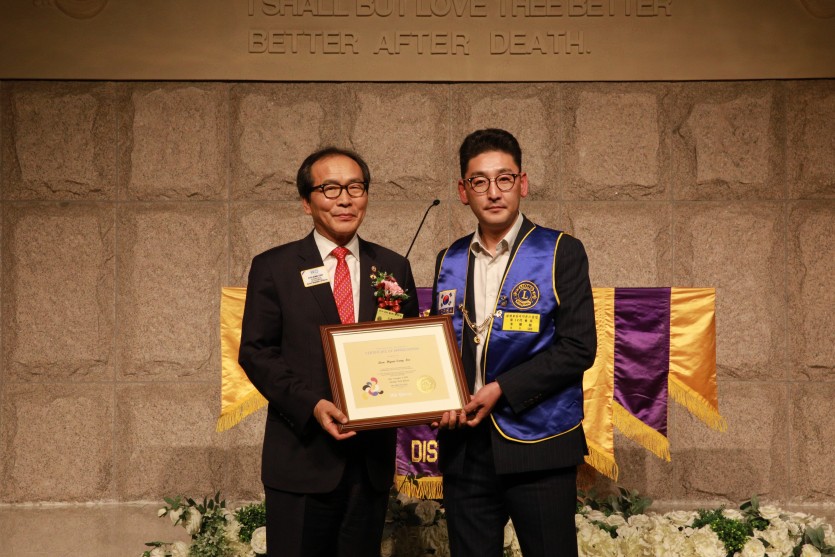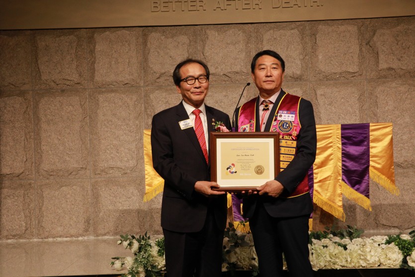 국제회장 감사장: 총재 주선희L, 직전총재 박봉교L, 강원청원클럽 최민호L, 묵호클럽 김기주L, 백운클럽 최동수L, 원주햇빛클럽 황영순L, 섬강클럽 신형락L, 흥원클럽 신예섬L, 원주동악클럽 이현상L, 속초클럽 박태환L.