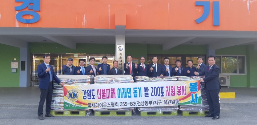 355-B3(전남동부)지구 산불피해 이재민 돕기 쌀 200포 지원봉사 페이지 정보 작성자 최고관리자 댓글 0건 조회 5,207회 작성일 19-04-18 10:01 본문 감사합니다 목록 이전글지구총재, 지구제2부총재 등록 19.04.22 다음글산불이재민 돕기 짜장면 판매 기부행사 19.04.18