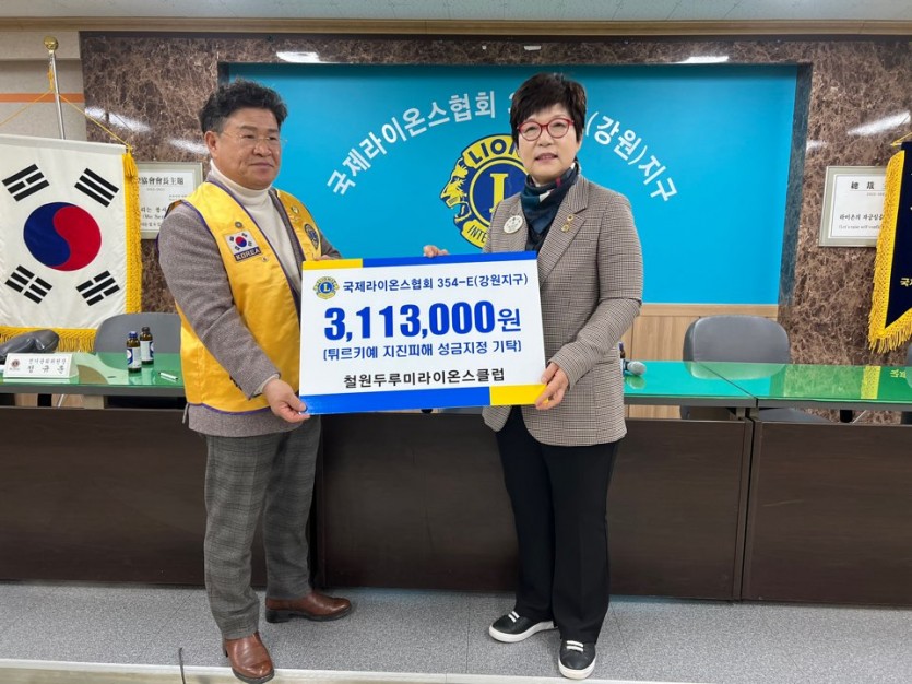 철원두루미클럽 튀르키예 지진 성금 전달식 페이지 정보 작성자 최고관리자 댓글 0건 조회 1,627회 작성일 23-03-10 14:22 본문 2023. 03. 10지구본부 교육연수원실 목록 이전글제2회 선거관리위원회의 23.03.10 다음글원주리더스클럽 튀르키예 지진 피해 성금 기탁 23.02.28