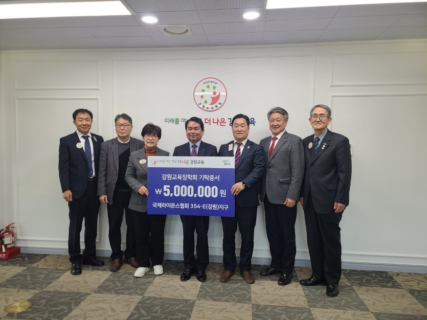 국제라이온스협회354-E(강원)지구, 강원교육장학회에 장학금 500만원 기탁