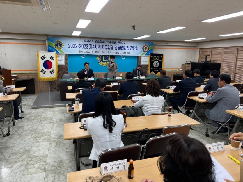 제4지역 지구임원 및 클럽회장 간담회 페이지 정보 작성자 최고관리자 댓글 0건 조회 1,798회 작성일 22-11-08 09:49 본문 2022.11.03지구본부 교육연수원실 목록 이전글22-23 제1회 신입회원 연수회 22.11.08 다음글2022-2023 평화포스터경연대회 심사 22.11.07