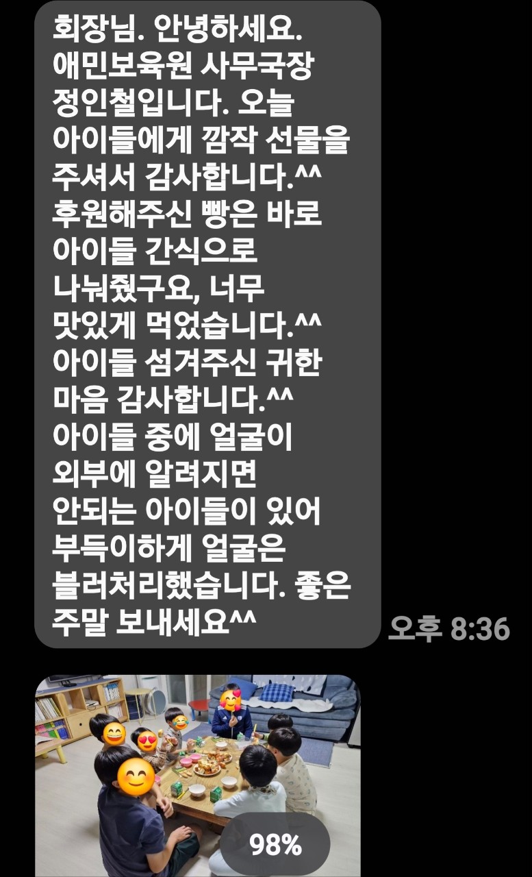 춘천라이온스클럽 간식봉사 페이지 정보 작성자 춘천 댓글 0건 조회 735회 작성일 25-11-30 00:16 본문 춘천라이온스클럽에서는 춘천소재의 애민보육원에 2025냔 10월 21일과 11월 7일 두차례에 걸쳐 간식을 전달하는 봉사 활동을 하였습니다. 목록 이전글춘천라이온스클럽 배추봉사활동 25.11.30 다음글춘천라이온스클럽 시각장애인단체 행사 봉사 25.11.30
