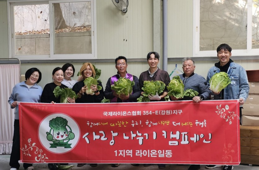 지난 2025년 11월 1일 춘천낙원라이온스클럽에서 배추 80포기를 죽림동 성당에서 운영하는 독거노인 무료급식소 한삶밥집에 기증하는 행사에 함께 참여하여 나눔봉사를 하였습니다.
