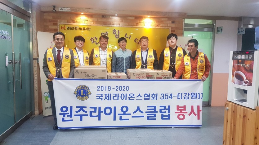 "원주라이온스클럽 명륜종합사회복지관 봉사" 페이지 정보 작성자 원주 댓글 0건 조회 9,471회 작성일 19-10-28 17:34 본문 원주라이온스클럽(회장: 이연석L)은 10월 22일(화) 오전11:00시 떡뽁기,냉면, 막국수등 100만어치 기부하였습니다. 목록 이전글청원라이온스클럽, 원주지역자활센터 시설 개보수 패널지원 봉사 19.10.29 다음글화천 산소길 걷기 대회 환경정화봉사 19.10.28