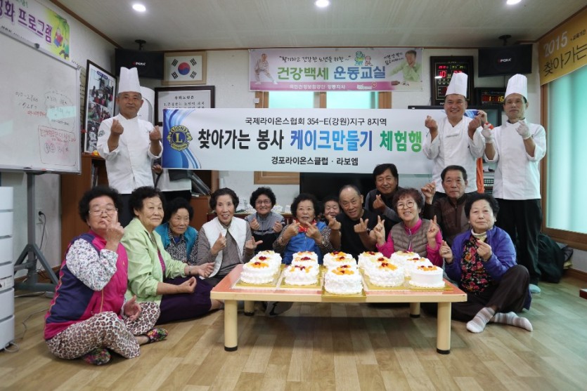 2019년10월23일(수요일)강릉시 성산면 오봉리 소재 노인정에 방문하여 케익 만들기를 하였습니다. 마을 어른신들께서 넘 신나하시고 좋아하는 모습이 봉사하는 최성우L께서 기분좋은 봉사를 하시고, 경포라이온스클럽이 너무 자랑스럽습니다.