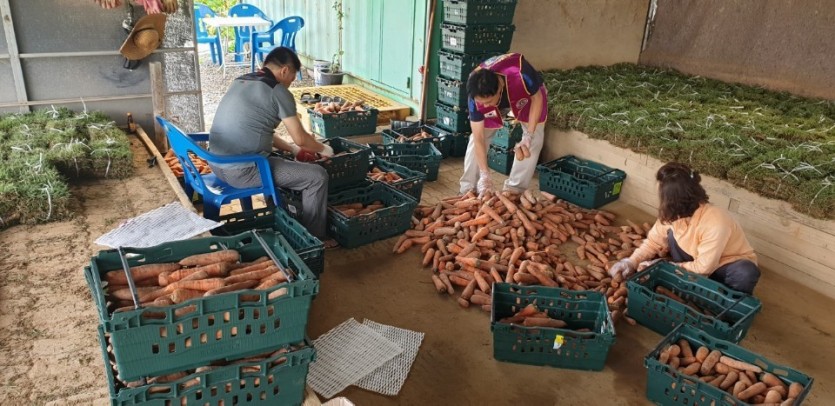 농산물(당근,양파) 선별작업을 거쳐 원주푸드마켓과 자신보육원,원주시종합복지관에 무상지원하면 그곳에서 소분하여 한부모가정이나 다문화가정,이탈주민등 차상위계층에 전달되는 봉사를 하였습니다
