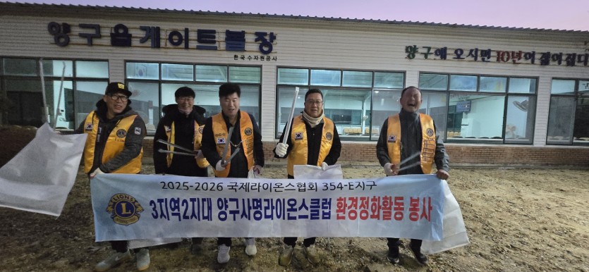 양구사명라이온스클럽 페이지 정보 작성자 양구사명 댓글 0건 조회 814회 작성일 25-11-14 15:40 본문 11월 환경정화활동 목록 이전글동해 라이온스클럽 장애인보호작업장 25.11.15 다음글옥계라이온스 클럽 짜장면 봉사 25.11.12