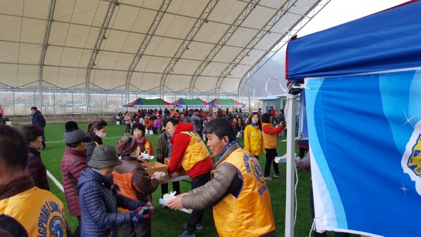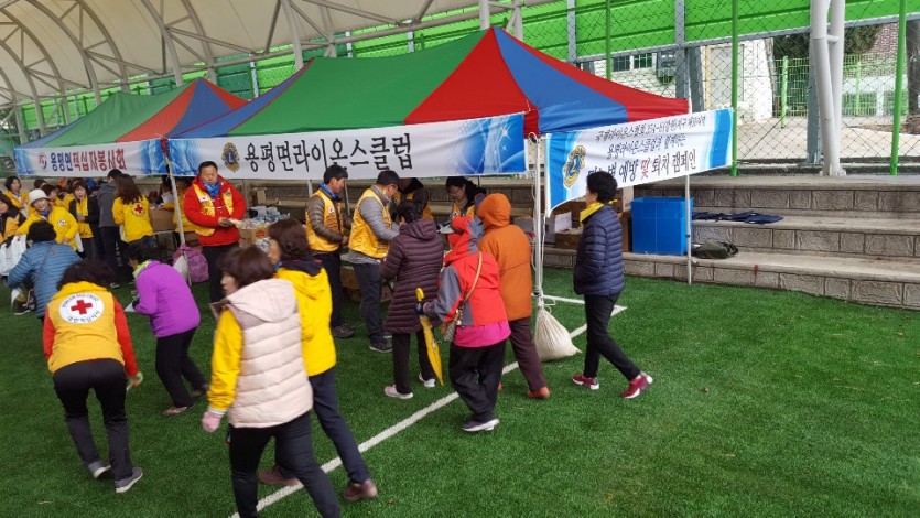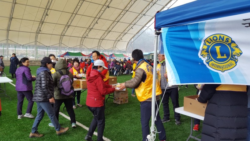 2019년 용평면민 건강 플러스 걷기대회를 실시하여 용평라이온스클럽은 1000여명의 용평면민에게 건강음료와 다과종류