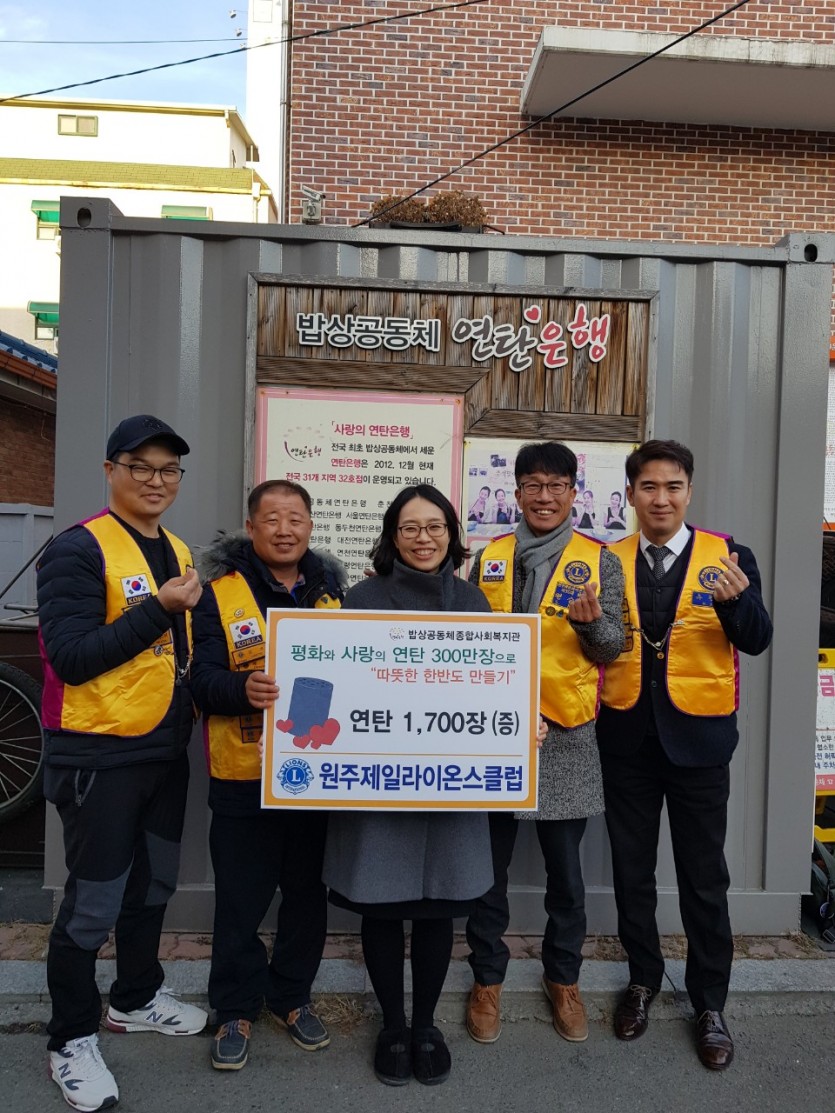 원주제일LC 연탄봉사 페이지 정보 작성자 원주제일 댓글 0건 조회 11,309회 작성일 19-02-01 15:07 본문 원주제일LC(회장 전승광)은 원주밥상공동체 연탄은행과 연계하여 연탄1,700장을 저소득, 불우이웃등에게 전달하였다.. 목록 이전글북원라이온스클럽 한마음척사대회 19.02.12 다음글섬강클럽 장학금 전달식 19.01.30
