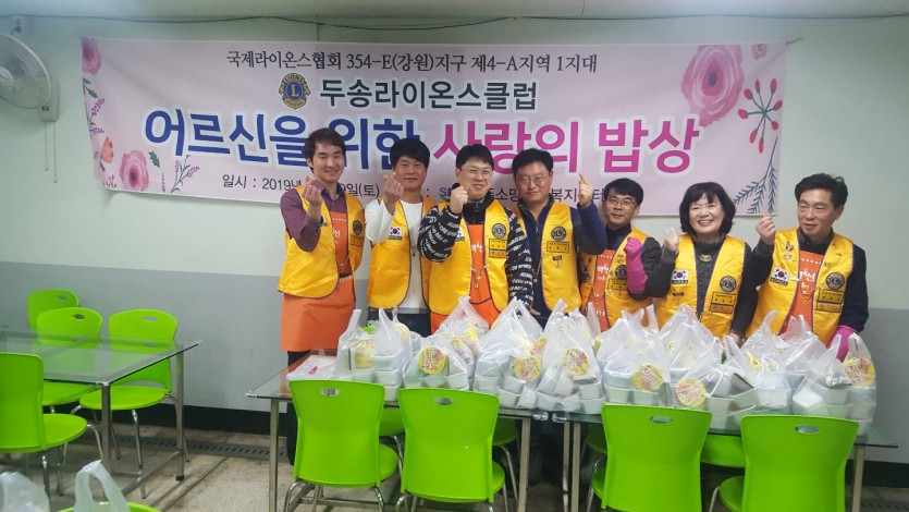 원주두송라이온스클럽 원주소망주기 복지센터 자장봉사 페이지 정보 작성자 원주두송 댓글 0건 조회 11,364회 작성일 19-02-22 14:54 본문 원주두송라이온스클럽은 2019.1.19 원주소망주기 복지센터에서 독거노인 및 노숙자분들께 자장면을 중식으로 봉사하였다. 목록 이전글용평 라이온스 속사 주택화제 주변정리 및 장비지원, 복구지원봉사금 전달 19.02.23 다음글원주두송라이온스클럽 갈거리사랑촌에 자장봉사. 19.02.22