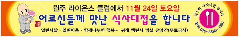 장소:원주시 평원동 중평길78~12(백련사 부설공양간)