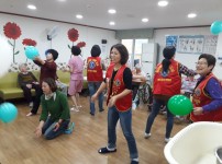 동해무릉클럽 노인요양원 책읽기 봉사와 일대일풍선배구놀이와 간식