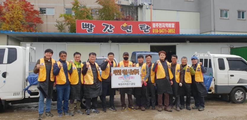 북원클럽 연료및연탄봉사 페이지 정보 작성자 북원 댓글 0건 조회 11,416회 작성일 18-11-02 17:05 본문 북원클럽(회장 황윤정) 2018.10.28(일) 10시 원주시 일원에서 200만원 상당 연료 및 연탄을 전달하는 봉사를 실시하였다. 목록 이전글섬강클럽 18.11.05 다음글8지역 체육대회 당뇨병예방및퇴치캠페인 18.10.22