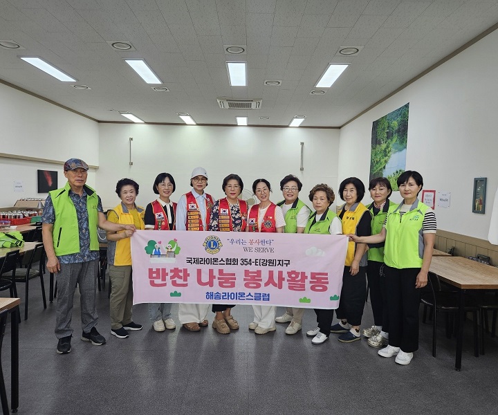양양해송라이온스클럽 삼계탕(반찬 나눔) 봉사활동 페이지 정보 작성자 양양해송 댓글 0건 조회 1,053회 작성일 25-08-26 10:16 본문 해송라이온스클럽은 8월 복날을 맞아 지역의 봉사단체와 협력하여 독거어르신과 어려운 이웃에게 삼계탕 나눔 봉사를 하였습니다 목록 이전글화천라이온스클럽 8월 장수식당 배식봉사 25.08.26 다음글속초설해라이온스클럽8월봉사 25.08.26