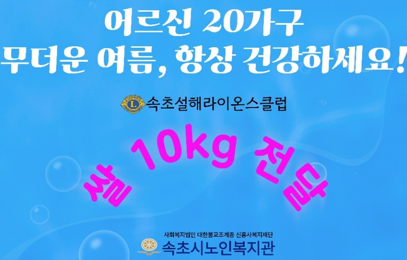 속초설해라이온스쌀나눔봉사 페이지 정보 작성자 속초설해 댓글 0건 조회 1,110회 작성일 25-07-05 11:44 본문 속초시 노인복지관 선정 어르신 쌀10kg씩 20가구 전달 무더운 날씨에 16명 참석하여 각 가정에 전달하였습니다 목록 이전글원주제일클럽 원주종합사회복지관 쌀400KG지원봉사 25.07.11 다음글황지라이온스클럽 봉사금전달 25.06.24