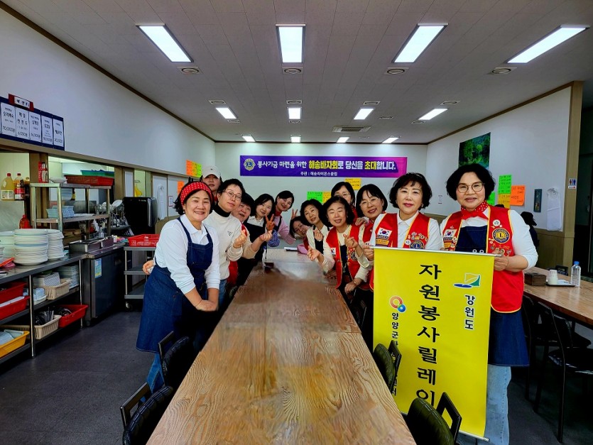 양양 해송라이온스클럽 봉사 기금 마련을 위한 바자회 페이지 정보 작성자 양양해송 댓글 0건 조회 1,455회 작성일 25-04-20 22:06 본문 양양 해송라이온스틀럽은 4월16일(수) 봉사 기금 마련을 위한 바자회를 실시하여 라이온의 봉사정신과 가치를 알리는 귀중한 계기가 되었습니다. 목록 이전글춘천월드클럽 자연보호활동 25.04.24 다음글강릉오죽클럽 홍제동복지회관 배식봉사 25.04.20