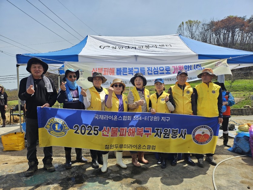 2025 산불피해복구 자원봉사 페이지 정보 작성자 철원두루미 댓글 0건 조회 1,373회 작성일 25-04-24 22:09 본문 철원 두루미라이온스클럽 영덕으로 산불피해복구 자원봉사 다녀왔습니다. 목록 이전글철원 두루미 라이온스클럽 4월 환경정화 25.04.18 다음글춘천월드클럽 자연보호활동 25.04.24