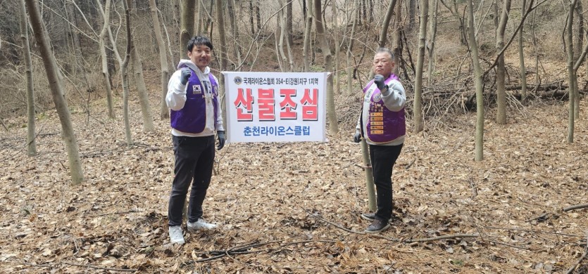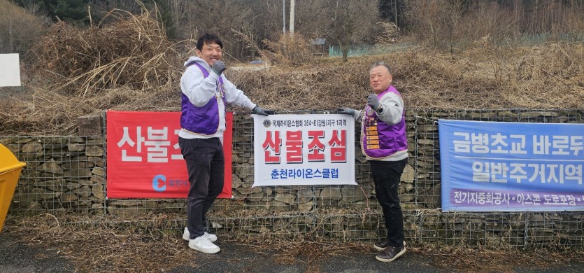 춘천라이온스클럽 등산로 산불조심 캠페인 현수막 설치 활동