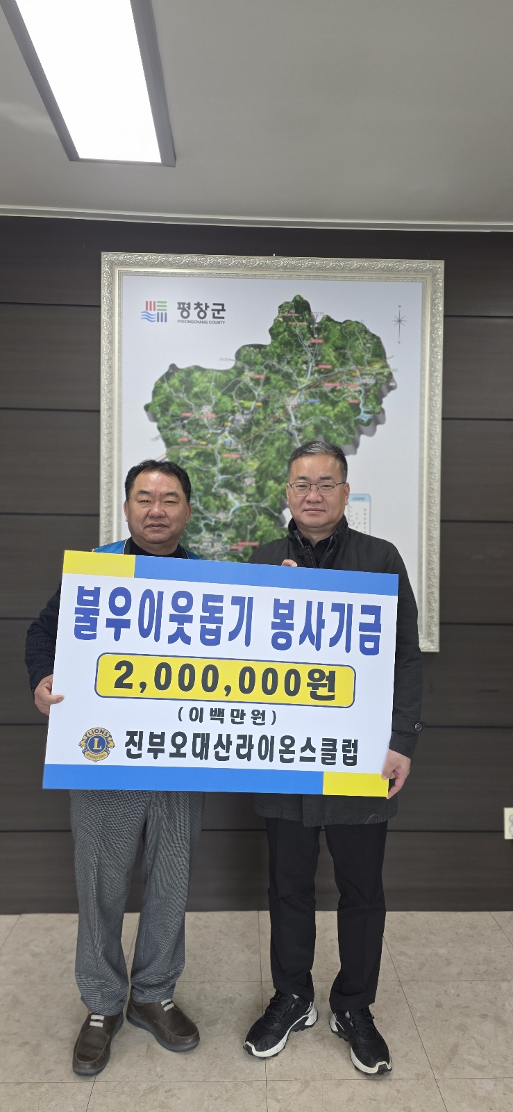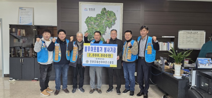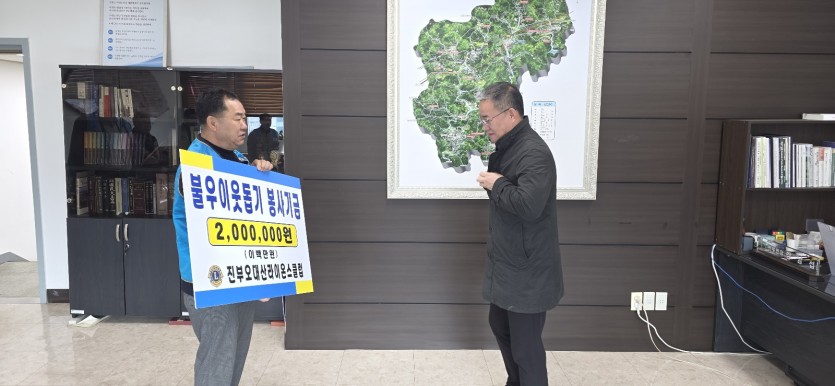 2025년 진부오대산라이온스클럽 불우이웃돕기 봉사 페이지 정보 작성자 진부오대산 댓글 0건 조회 1,297회 작성일 25-03-19 19:30 본문 진부오대산라이온스클럽에서는 지난 척사대회에서 모금한 성금을 불우한 이웃을 위해 사용 해 달라고 진부면사무소(면장 김남섭)에 전달 하였습니다. 목록 이전글속초설해 3월 정기봉사 25.03.20 다음글2025 진부오대산라이온스클럽 불우이웃돕기 척사대회 및 신년인사회 25.03.13