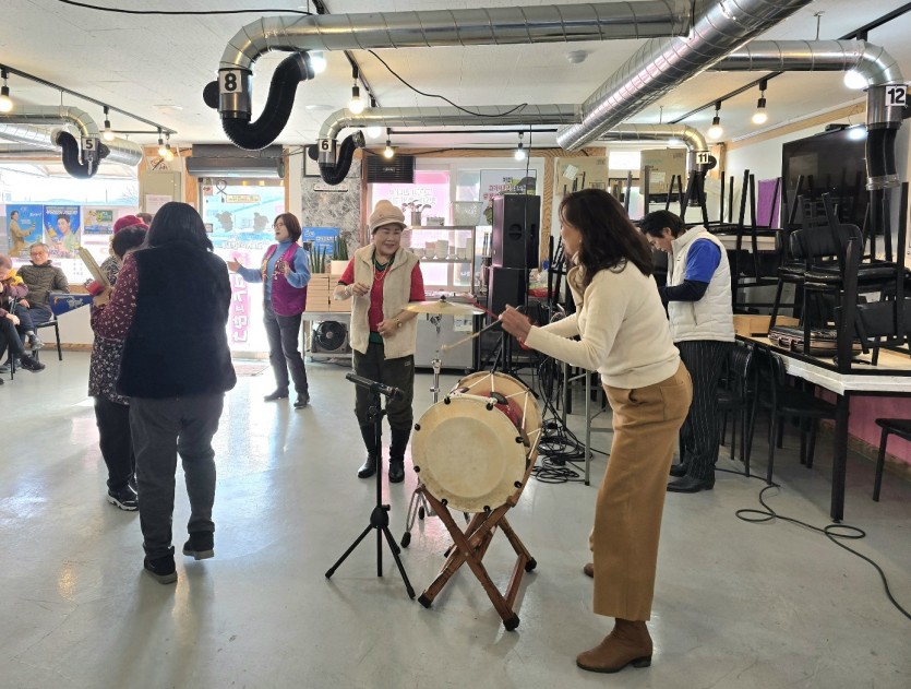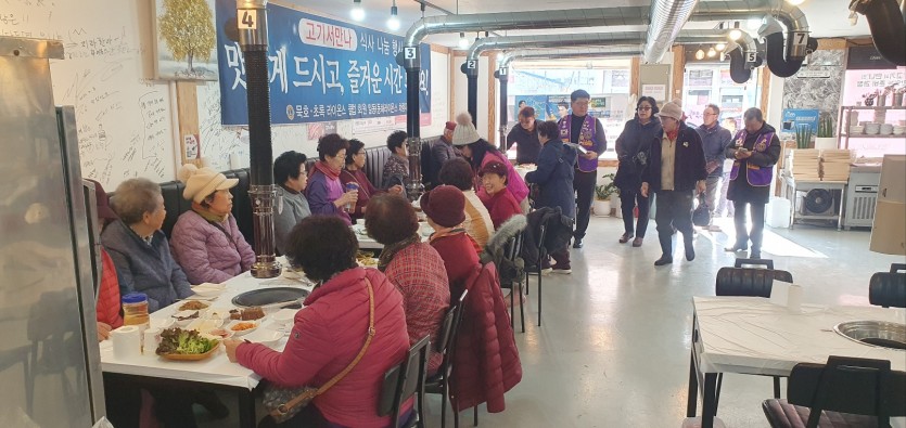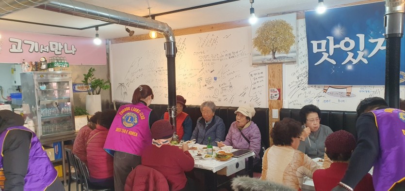 삼겹살로 배부르게 해드리고 지역가수분들의 노래봉사와 고고장구로 한껏흥을 올리는 신나는 봉사였습니다.