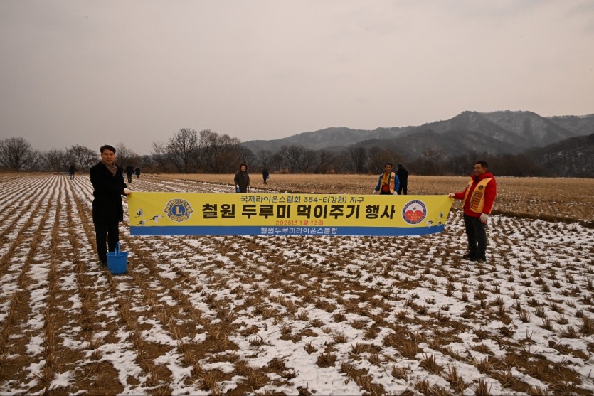 철원두루미라이온스클럽 "두루미 먹이주기 행사" 페이지 정보 작성자 철원두루미 댓글 0건 조회 1,387회 작성일 25-01-16 22:38 본문 2025년 1월 13일 김영만 총재님과 함께 천연기념물 202호 두루미 등 철새 먹이주기 행사를 진행하였습니다. 목록 이전글강릉백일홍클럽 배식봉사 25.01.20 다음글초록라이온스 독거노인 식사봉사 25.01.02