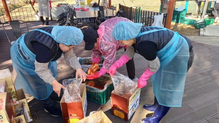 김장김치를 직접만들어 10kg 박스에 80개를 만들어서 원주재가노인복지센터에 40여개를 드리고