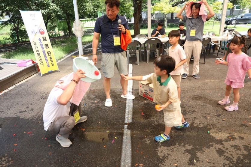 직접 준비한 갈비, 장어, 삼겹살 및 과일, 떡등 배식하는 봉사를 하였고 빨래건조대 5점, 리모컨선풍기 10대, 수건 50장등 물품봉사도 하고 즐거운 게임도 하며 즐거운 하루를 보내고 왔습니다.