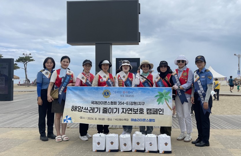 양양 해송클럽 해양쓰레기 줄이기 자연보호 캠페인 페이지 정보 작성자 양양해송 댓글 0건 조회 1,841회 작성일 24-08-19 22:20 본문 양양 해송클럽은 8월16일 낙산해수욕장에서 속초해양경찰서에서 주관하는 해양쓰레기 줄이기 자연보호 캠페인에 참여하여 봉사 활동을 펼쳤습니다. 목록 이전글섬강라이온스클럽 후원금전달 24.08.20 다음글청강클럽-춘천시 관내 요양병원 방문 -이,미용 봉사 24.08.19
