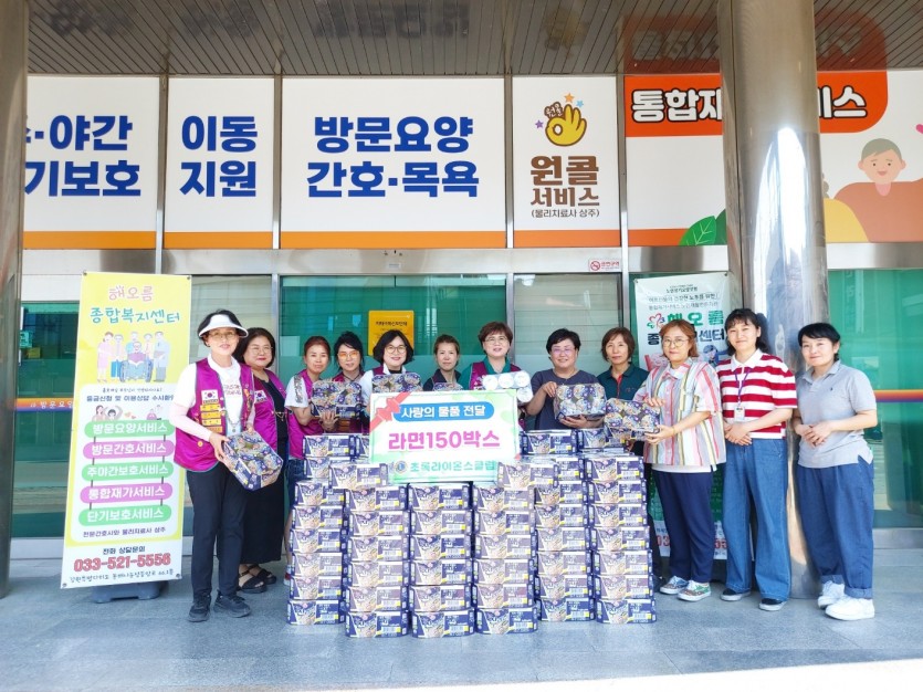 ㅎ마련된 기금으로 3곳에 라면 각 각 150박스 씩 전달하고 개별 독거 노인께도 전달해
