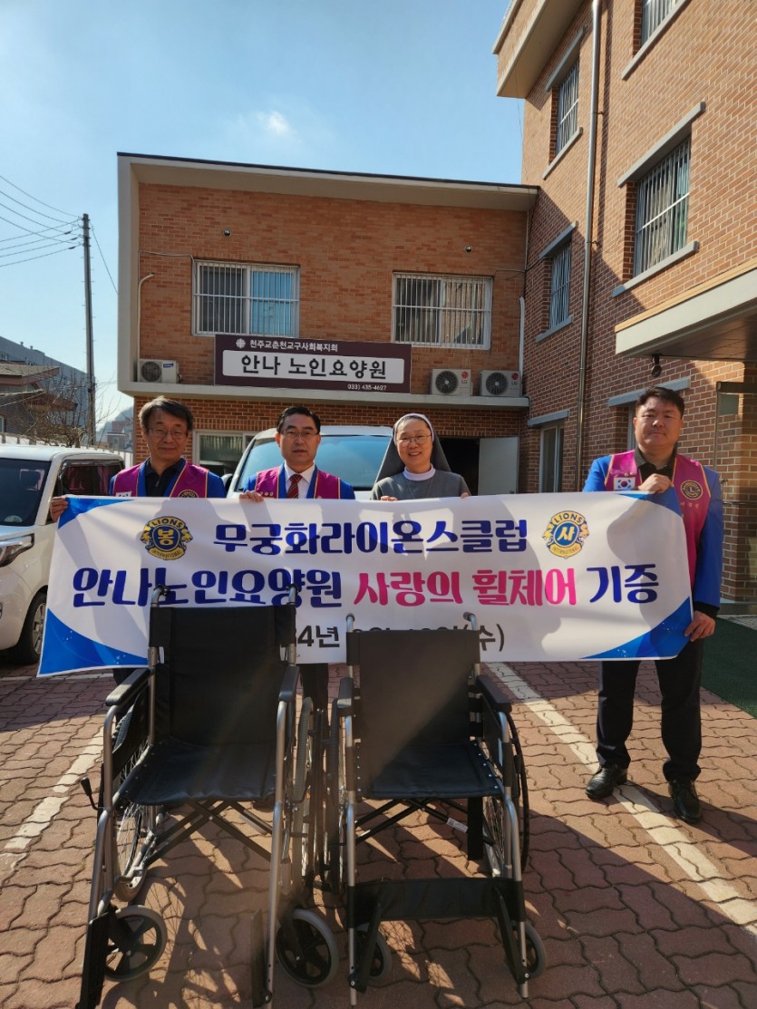 무궁화라이온스클럽 "사랑의 휠체어" 전달 페이지 정보 작성자 무궁화 댓글 0건 조회 2,077회 작성일 24-03-18 14:54 본문 안나노인요양원에 거동이 불편한 어르신들을 위해 "사랑의 휠체어" 전달 목록 이전글원주 동악클럽 식사지원 봉사 24.03.20 다음글양양 라이온스클럽 한방의료이미용 봉사 24.03.18