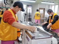 장애인 일터 "일과 사랑"에서 의료기기 포장, 쇼핑백 접기 봉사