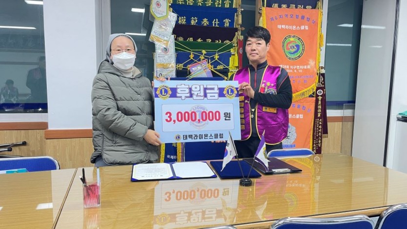 태백라이온스클럽 후원협약 페이지 정보 작성자 태백 댓글 0건 조회 2,063회 작성일 23-12-01 13:48 본문 하늘바라기에서 생활하는 소외청소년들을위한 후원협약 및 후원금전달 목록 이전글제4지역 합동봉사(북한 이탈주민 온수매트증정) 23.12.05 다음글사랑의 연탄봉사 23.11.29