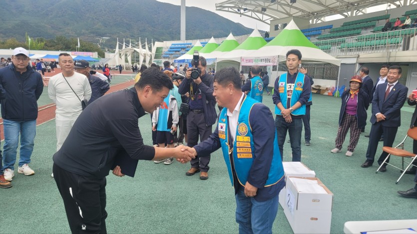 10월7일 제45회 노산문화제 제41회 군민의 날 기념 8개 읍면 줄다리기 대회를 진부오대산라이온스크럽에서 주관, 진행하는 봉사활동을 하였습니다.