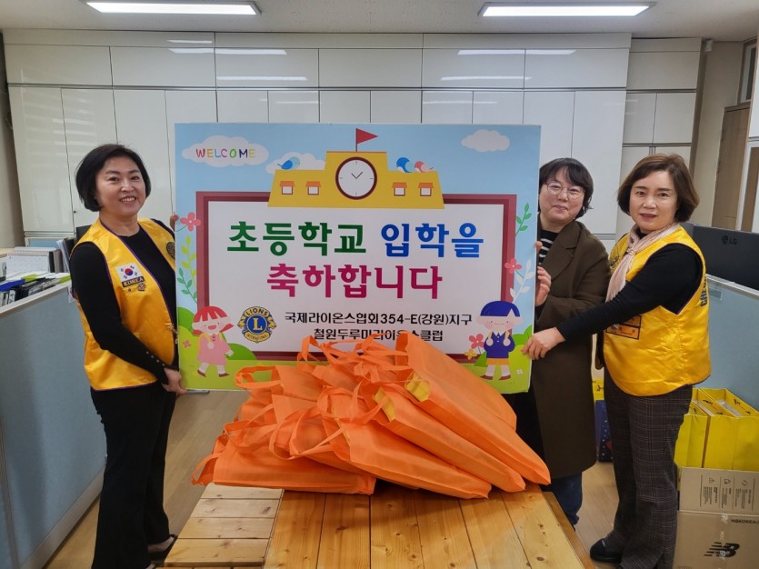 3월2일. 입학식을 맞이하여 초등학교 신입생들에게 학용품셋트 전달식을 잘 마무리 했습니다.
