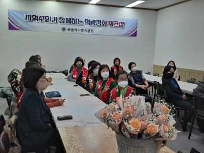 새해를맞아 지역주민과함께 강사님을 모시고 역량강화워크샵을 진행하였습니다 페이지 정보 작성자 양양해송 댓글 0건 조회 2,909회 작성일 23-01-19 15:33 본문 새해를맞아 1월월례회를 마치고지역주민과함께 강사님을 모시고 역량강화워크샵을 진행하였습니다 목록 이전글횡성나누리 라이온스클럽 23.01.19 다음글춘천클럽-춘천시 관내 연탄재 수거 봉사 23.01.19
