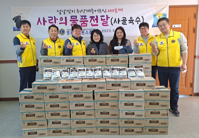 경포클럽 설날맞이 사랑나누기 선물전달 페이지 정보 작성자 경포 댓글 0건 조회 2,670회 작성일 23-01-20 16:20 본문 2023년1월9일 강릉자활종합돌봄센터에 사골육수600개 전달완료했습니다. 목록 이전글사랑의 연탄 배달 봉사 23.01.21 다음글백일홍라이온스클럽 새해 첫 배식봉사 23.01.20