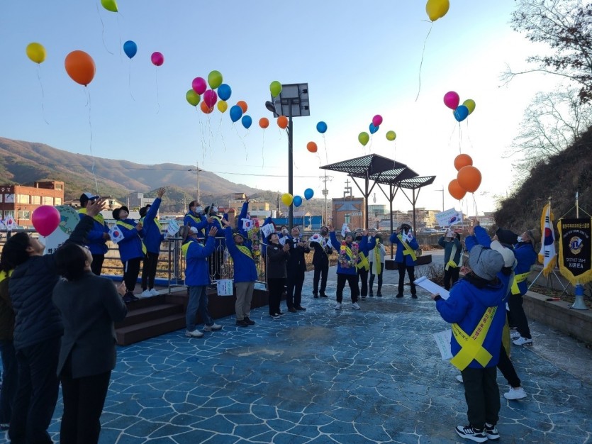 평화통일을 기원하며 그리고 우리 아이들의 행복을 기원하며 더 많은 모든것을 풍선에 담아 하늘높이 날렸습니다.