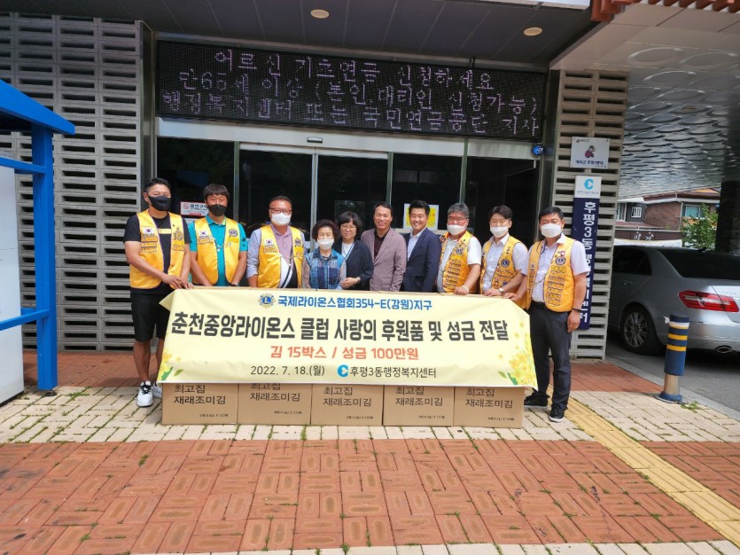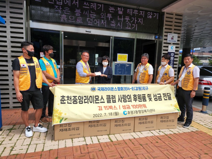 춘천중앙라이온스클럽 사랑의 후원품및 성금전달 페이지 정보 작성자 춘천중앙 댓글 0건 조회 3,394회 작성일 22-07-19 18:23 본문 2022년7월18일 춘천중앙라이온스클럽 사랑의 후원품(김15박스,100만원상당) & 성금100만원을 후평3동사무소에 전달 목록 이전글원주 백년클럽 아로니아 가공포장 6명 봉사 22.07.20 다음글주문진 노인복지회관 배식봉사 실시 22.07.18