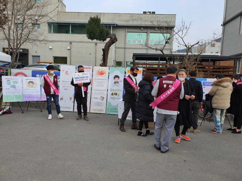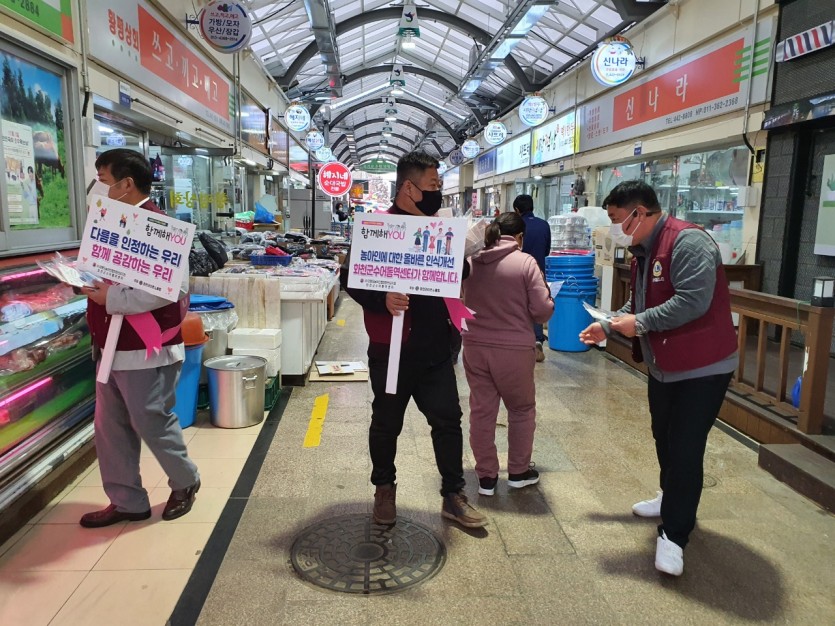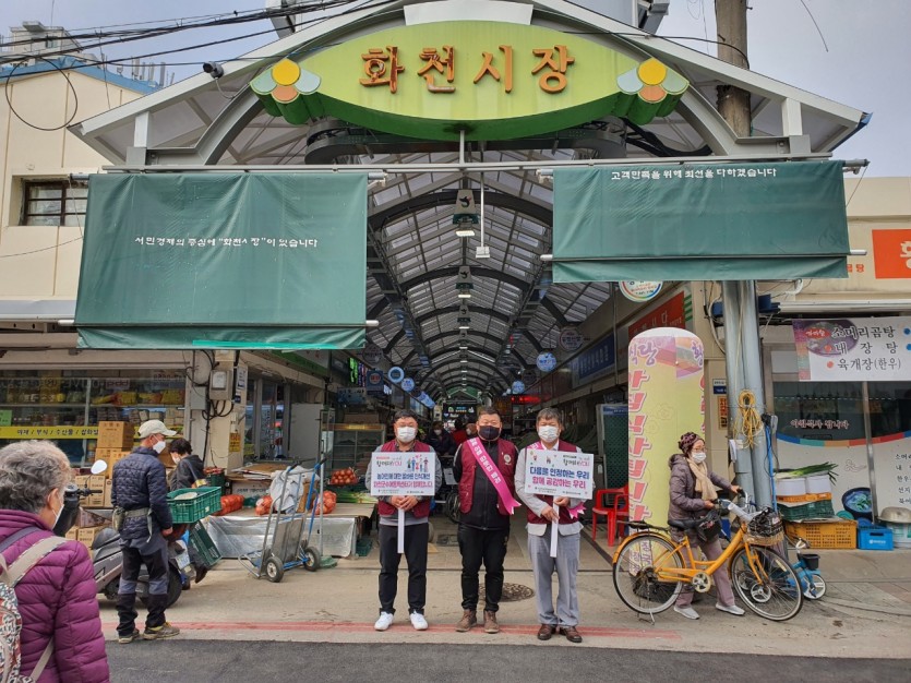 화천읍 5일 장날 장터 일대 및 중앙시장 일대에서 캠페인 진행