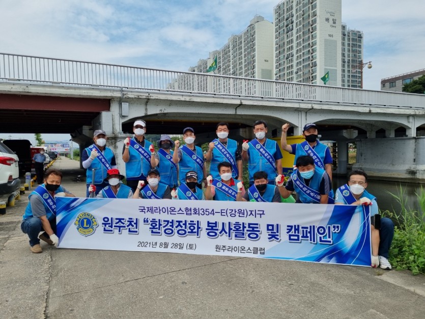 원주라이온스클럽(회장:조창균L)은 2021년 8월 28월 원주천 환경정화봉사 및 캠페인을 하였습니다.