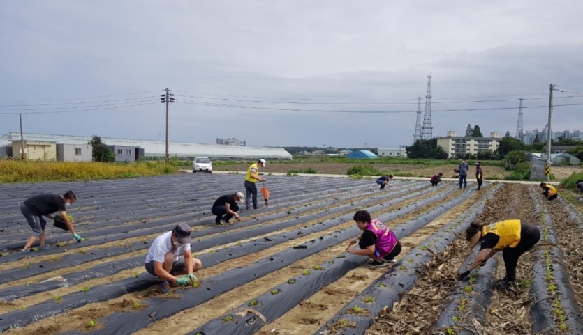 8월15일 임영라이온스에서는 회장 윤임자, 김연진조직관리 위원장님의 밭에 겨울 김장봉사 할 배추모종을 옮겨심기를 하였습니다.