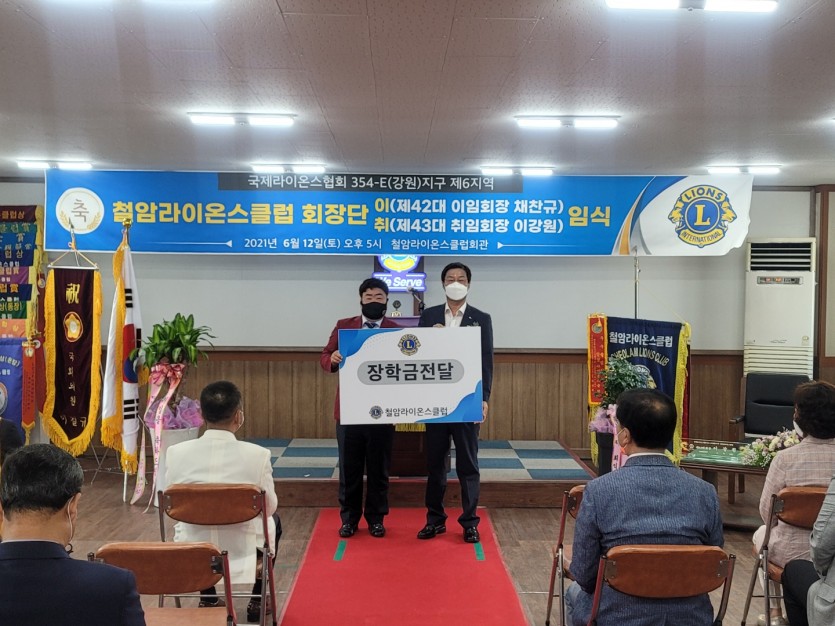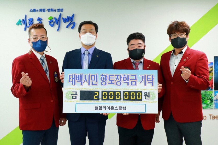 철암라이온스클럽 이취임식에 앞서 태백시장실로 직접찾아가 태백시장님이신 류태호 시장님을 만나 향토장학금을 이강원 회장님께서 직접전달해주는 향토장학금 전달식이 있었습니다. 이후 이취임식에서 정식행사로 다시 전달해주는 순서를 가져 보았습니다.