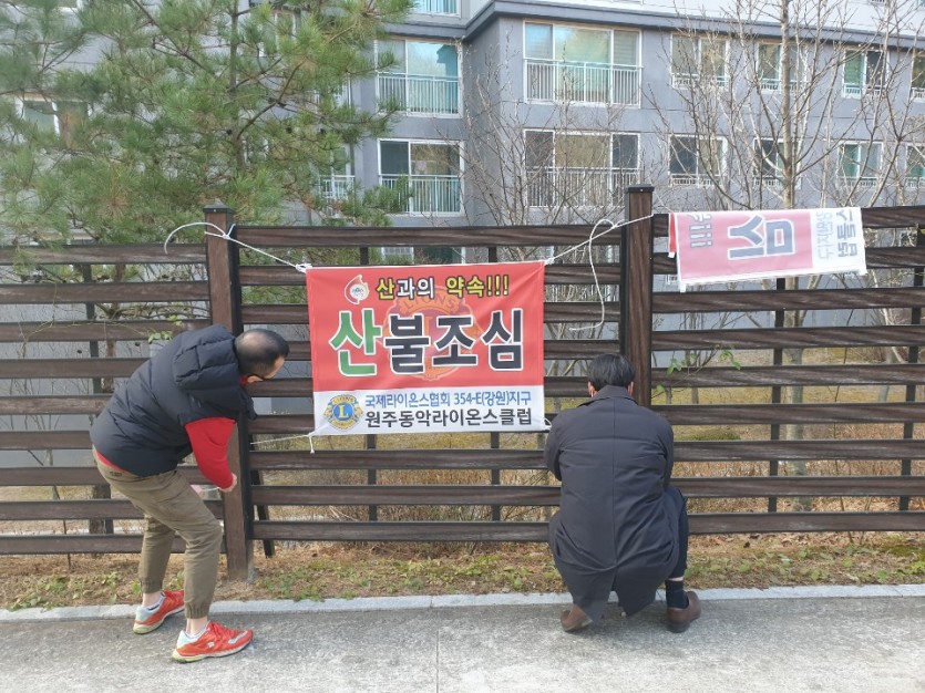 원주동악클럽 "산불조심 캠페인" 페이지 정보 작성자 원주동악 댓글 0건 조회 5,799회 작성일 20-12-01 15:05 본문 원주동악클럽(회장:심세현)은 12월1일(화) 봉화산 및 근처에 현수막을 설치하는 등 건조한 날씨가 이어지고 있는 요즘 산불조심 캠페인을 펼쳤다 목록 이전글원주백년클럽 '산불조심 현수막'봉사 20.12.02 다음글홍천 한서라이온스 클럽 연탄봉사 20.11.30