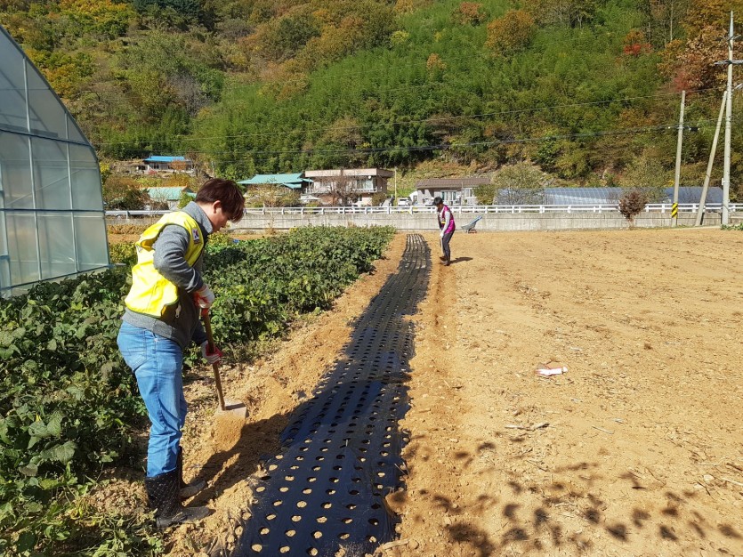 지역에서 마늘농사 비닐작업을 협조를 하였다.